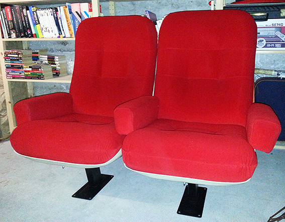 … je m’étais rendu sur place pour racheter – tout à fait légalement, m’empressé-je de préciser – certains éléments de mobilier et de décoration. je m’étais ainsi porté acquéreur de deux fauteuils, d’un cendrier sur pied et de divers objets tels que bobines d’amorce, lettres en plastique ayant servi à annoncer les films, classeur de comptabilité datant de 1953, etc. j’en avais profité aussi pour prendre des photos, histoire de garder un souvenir de la salle avant démolition. le propriétaire d’alors m’avait demandé de retirer les deux articles que j’avais consacrés à cet endroit mythique sur mon blog (1. les objets, 2. le lieu), prétextant que l’endroit était privé et que je n’avais pas le droit de le photographier. or, si je ne m’étais pas caché pour les faire, et que personne ne m’avait dit quoi que ce soit à ce moment-là, j’avais tout de même obtempéré.