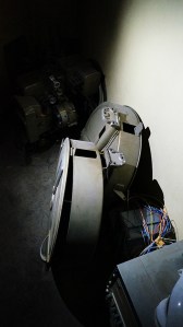 … je m’étais rendu sur place pour racheter – tout à fait légalement, m’empressé-je de préciser – certains éléments de mobilier et de décoration, et prendre des photos, histoire de garder un souvenir de la salle avant sa démolition. le propriétaire d’alors m’avait demandé de retirer les deux articles que j’avais consacrés à cet endroit mythique sur mon blog (1. les objets, 2. le lieu), prétextant que l’endroit était privé et que je n’avais pas le droit de le photographier. or, si je ne m’étais pas caché pour les faire, et que personne ne m’avait dit quoi que ce soit à ce moment-là, j’avais tout de même obtempéré.